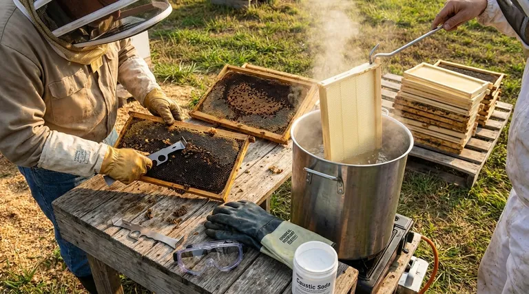 The process dissolves every last trace of wax, propolis, and biological matter. More importantly, it destroys the invisible threats: the resilient spores of diseases like American Foulbrood (AFB) that can persist for decades and wipe out entire apiaries.