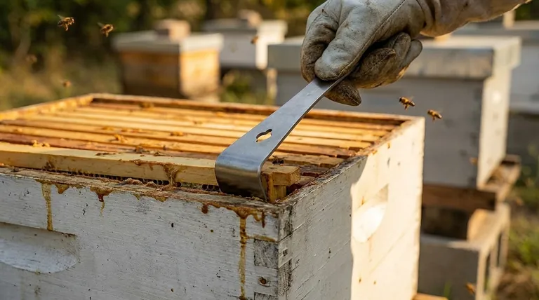 This isn't just about tidiness; it's about maintaining the precise "bee space" that allows frames to be removed smoothly. Using a knife for this is ineffective, and a screwdriver is useless. Proper scraping ensures your equipment functions as intended, preventing crushed bees and broken frames during future inspections.