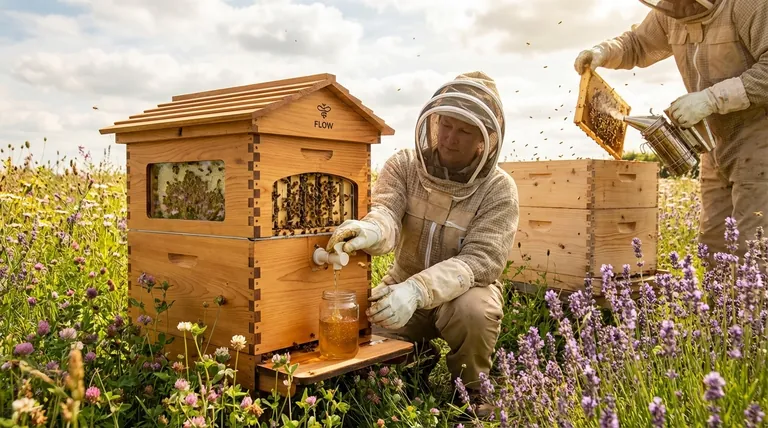 Flow Hive’s key innovation—the Flow Frame—eliminates comb destruction by allowing honey to drain via a spigot. Research highlights: