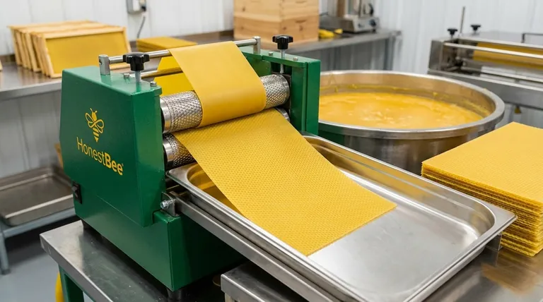 - For Guaranteed Uniformity: Instead of relying on manual dipping, a precision embossing roller or foundation mill is the cornerstone of scalable production. It takes a smooth ribbon of wax and imprints a perfect, uniform honeycomb pattern every single time, at a speed that manual methods can never match.