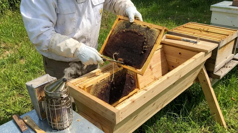 Langstroth hives are designed for active, hands-on management. Inspections involve pulling and checking individual frames for health, space, and productivity.