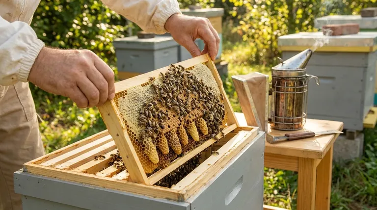 Once you find a frame with one or more capped swarm cells, carefully transfer that entire frame, along with its adhering nurse bees, into a nucleus box. Add a frame of food, and the process is complete. This is the fastest and often most reliable non-grafting method.