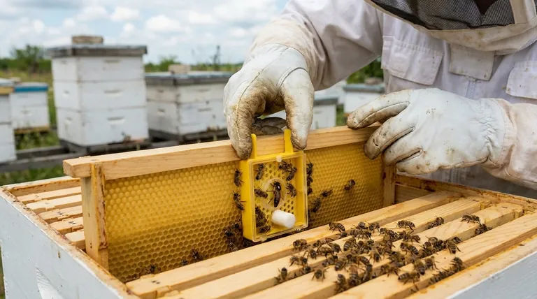A new queen is typically introduced inside a small protective cage. This cage allows the worker bees to become accustomed to her unique pheromones over several days without being able to harm her. They see her not as an invader, but as the solution to their queenless state.